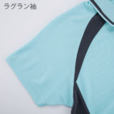 吸汗速乾ポリ100%、ソフトな素材で着心地のよいテニスシャツ。ラグラン切替デザインのスポーツポロタイプです。フライス編みの衿にはラインが入っており、前立てボタンの箇所も切替カラーを使いスポーティなデザインになっています。
