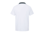 襟元の配色がアクセントになった、コントラストVネックタイプのゲームシャツ。