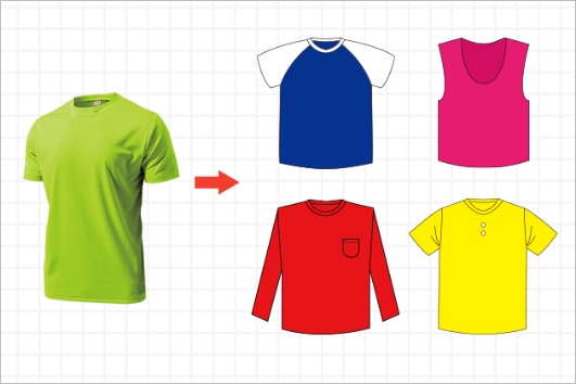 28色展開する定番P330ドライライト生地を使用することで、オリジナルデザインのスポーツウェアの作成が可能です。もちろん、スポーツウェアだけではなく、ゼッケンやタオル、メディカルユニフォームなど、カタログにない製品もOEMとして作成可能です!